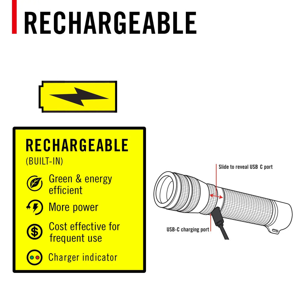 Die G60R-Lampe bietet 1.000 Lumen, TWIST FOCUS™ und USB-C-Aufladung in einem robusten, wasserdichten Design, das auf Zuverlässigkeit ausgelegt ist.