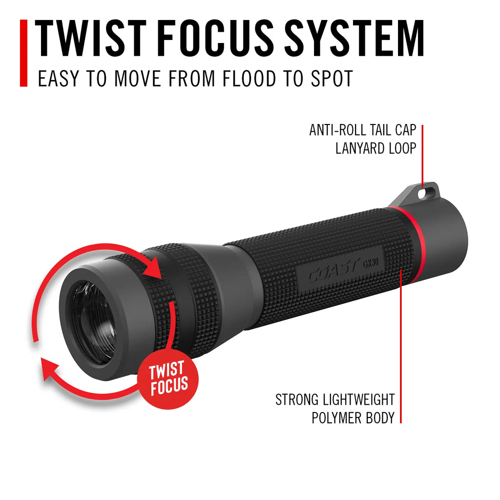 Mit der Coast GX30 erhalten Sie eine extrem leistungsstarke, langlebige und vielseitige Taschenlampe - bereit für jede Herausforderung.